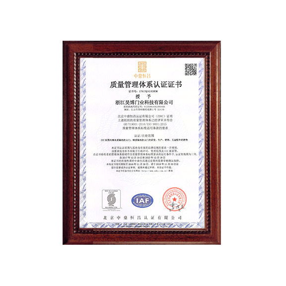公司一直以來(lái)嚴(yán)格執(zhí)行ISO9001質(zhì)量體系和ISO14001環(huán)境管理體系標(biāo)準(zhǔn),建立了完備的科研、開(kāi)發(fā)、生產(chǎn)、銷(xiāo)售服務(wù)體系。公司是浙江省門(mén)業(yè)協(xié)會(huì)會(huì)員單位,江山門(mén)業(yè)協(xié)會(huì)理事單位,中國(guó)木材與木制品流通協(xié)會(huì)會(huì)員單位,江山市消防協(xié)會(huì)副會(huì)長(zhǎng)單位。